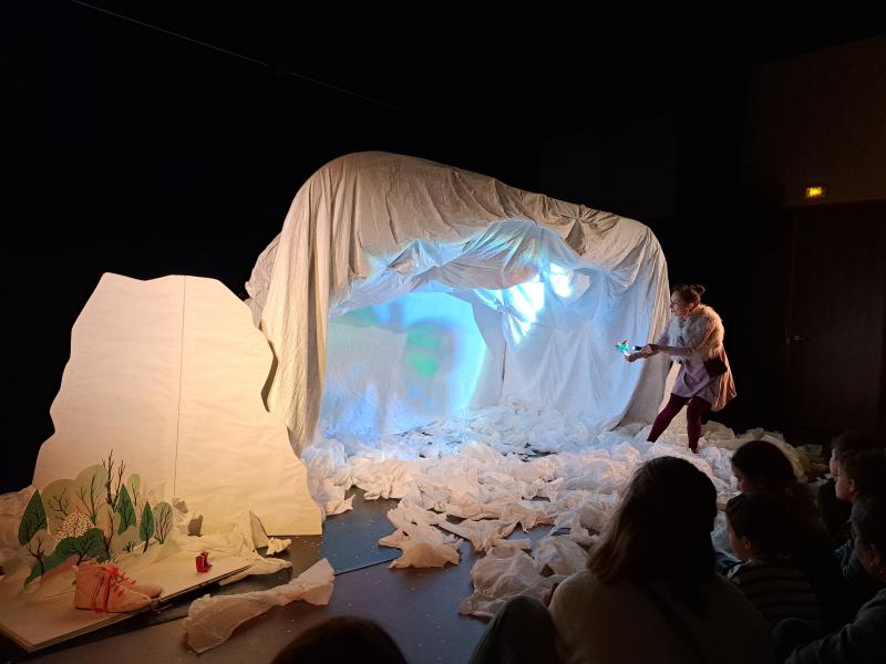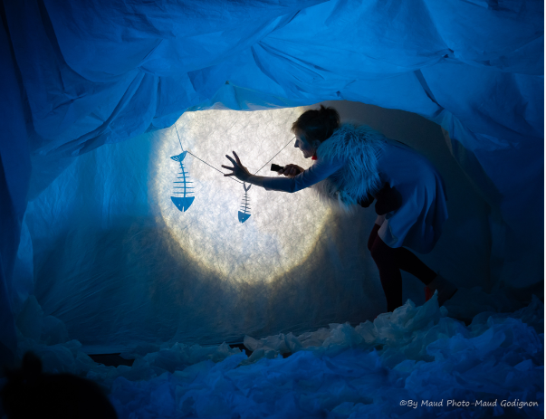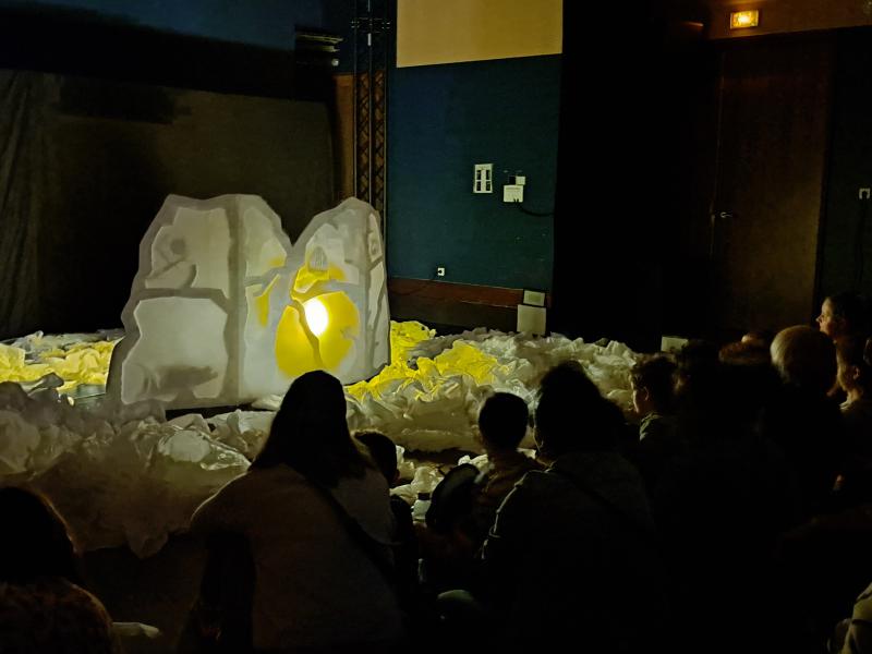 La mise en scène très symbolique et la scénographie mouvante, alliant papiers froissés, jeux d'ombres et de lumière, apparition d'une grotte... créent la surprise, le rythme, le mystère, stimulent l'imaginaire et les sens en éveil des plus petits, comme ceux des plus grands !